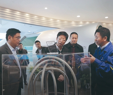 2007年2月,時任浙江省原副省長金德水(左二)視察久立生產現場