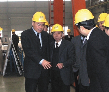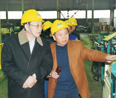 2007年2月,時任浙江省原副省長金德水(左二)視察久立生產現場